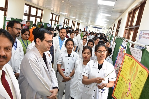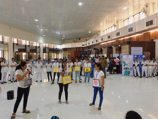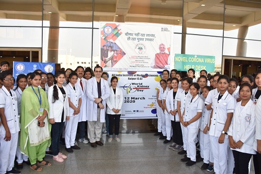 World Kidney Day is a universal campaign planned for creating awarenessamong the general public about one of the prominent health problem our society is facing today in the current scenario. As part of this universal and such significant campaign, World Kidney Day was observed byCollege of Nursing, AIIMS Raipur, C.G on 12th March 2020, with an aim to contribute in awareness and to empower general people to identify ways to prevent the occurrence of variouskidney diseases and the warning signs for early detection and prompt treatment on time. The programme was inaugurated by our Honourable Director Professor (Dr.) Nitin.M.Nagarkar in CENTRAL DOME (OPD Registration Area) at 9:15 AM. On this occasion, poster exhibition & competition was conducted on the theme “Kidney Health for Everyone Everywhere – from Prevention to Detection and Equitable Access to Care”for the BSc (Hons.) Nursing 2nd year students, which was visited and observed by Honourable Director Professor (Dr.) Nitin.M.Nagarkar , Medical Superintendent Professor (Dr.) Karan Peepreand (Dr.) VinayRathore, Assistant Professor, Department of Nephrology. In the chain of events, Role Play was done by two groups of B.Sc.(Hons.) Nursing 2nd year students in Main Dome till 12:00 pm. This was followed by health education session for the patients who came to the medicine OPD. The complete programme was guided by Prof. (Dr.) S.P.Dhaneria, Dean (Academics),AIIMS Raipur & supported by all the Facultiesof College of Nursing. The programme was organized by Dr.Solomon James M, Mr.Sharun N.V, Mr.P.D.Deepak, Mr.AbdulmunafMujawar,Mrs.Sumanshinde, Mr.Harish Kumar &Mrs.Renurekha,Nursing Tutors,Department of Medical Surgical Nursing. Activities succeeded in creating awareness about various aspects of kidney diseases, its causes, prevention & treatment aspects among the general public.