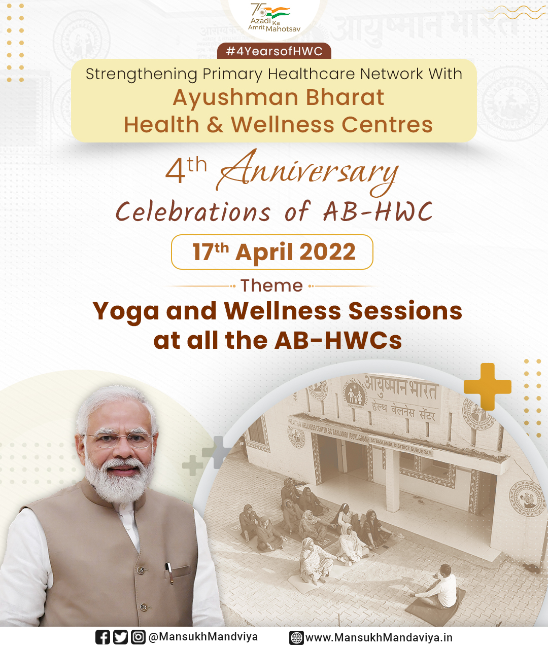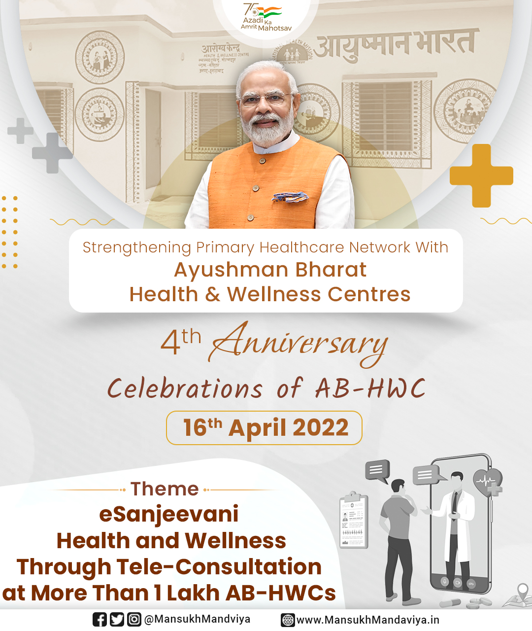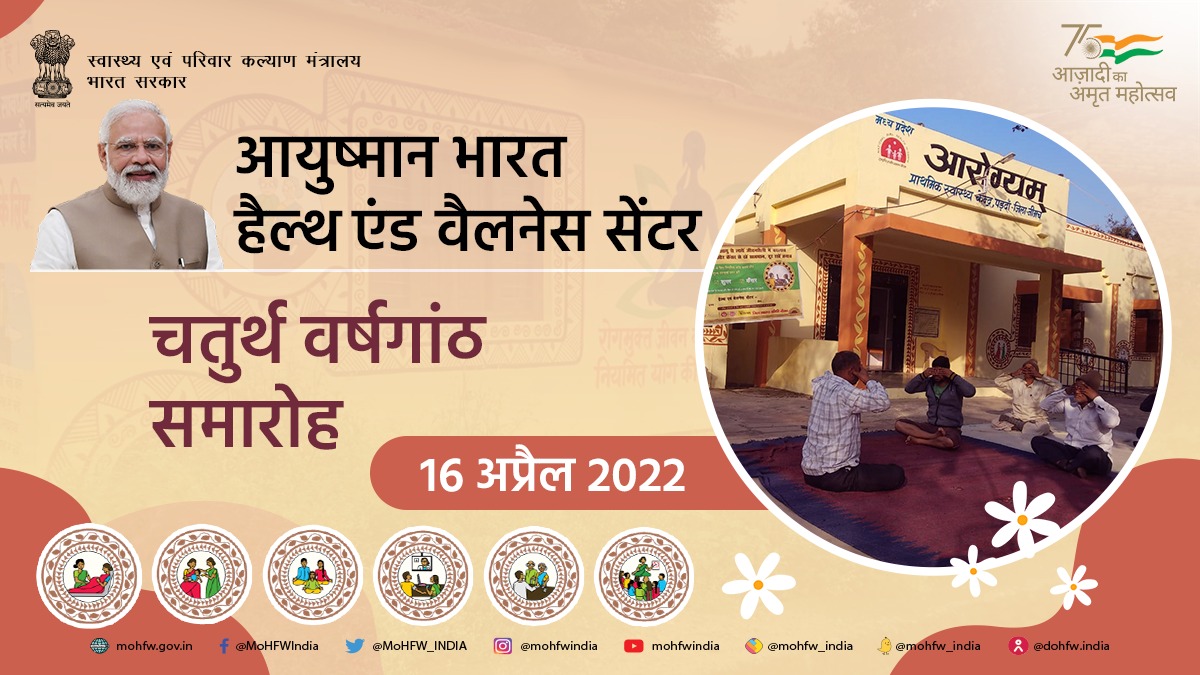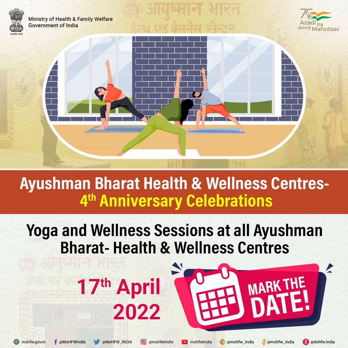 India Celebrates the 4th Anniversary of Ayushman Bharat -Health and Wellness Centres (16th April to 18th April) .