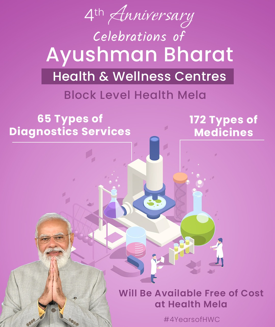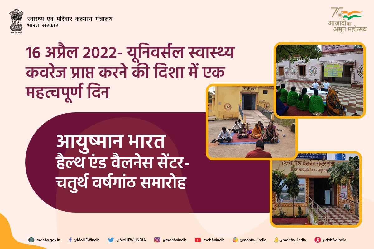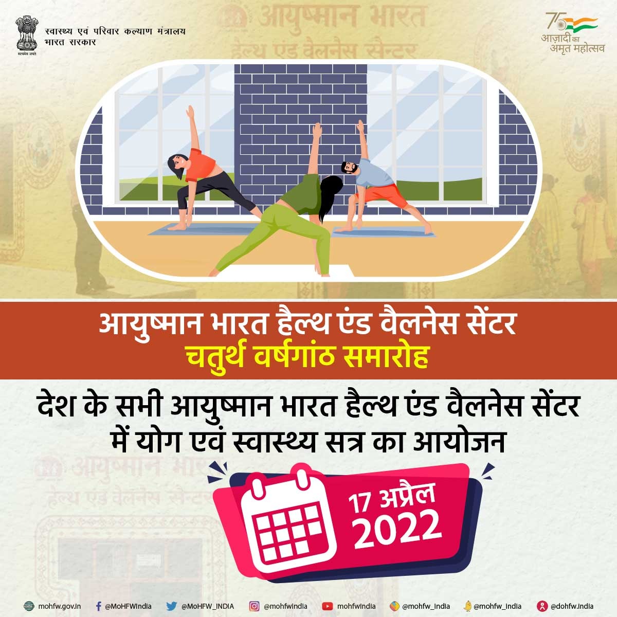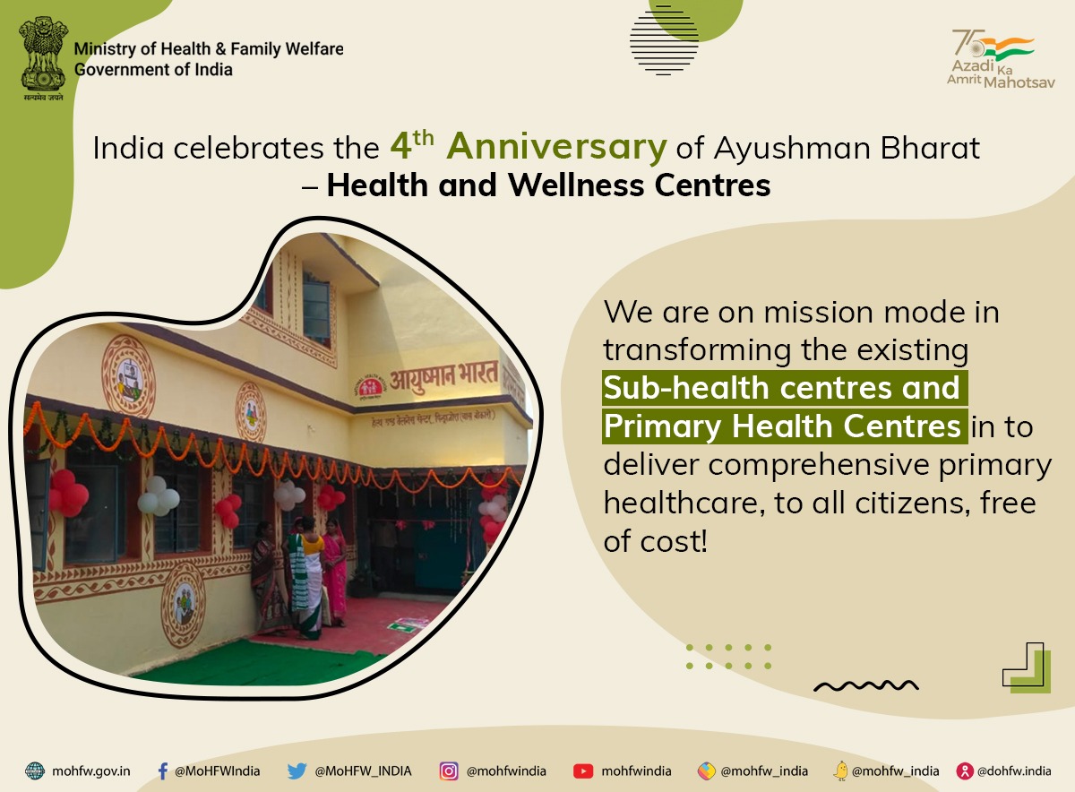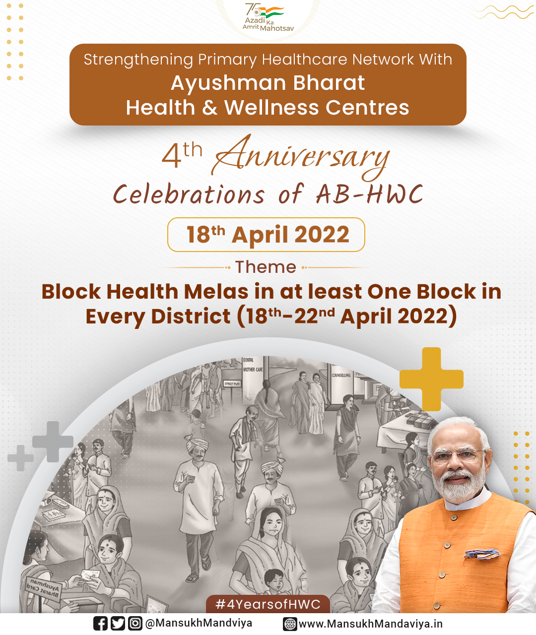 India Celebrates the 4th Anniversary of Ayushman Bharat -Health and Wellness Centres (16th April to 18th April) .