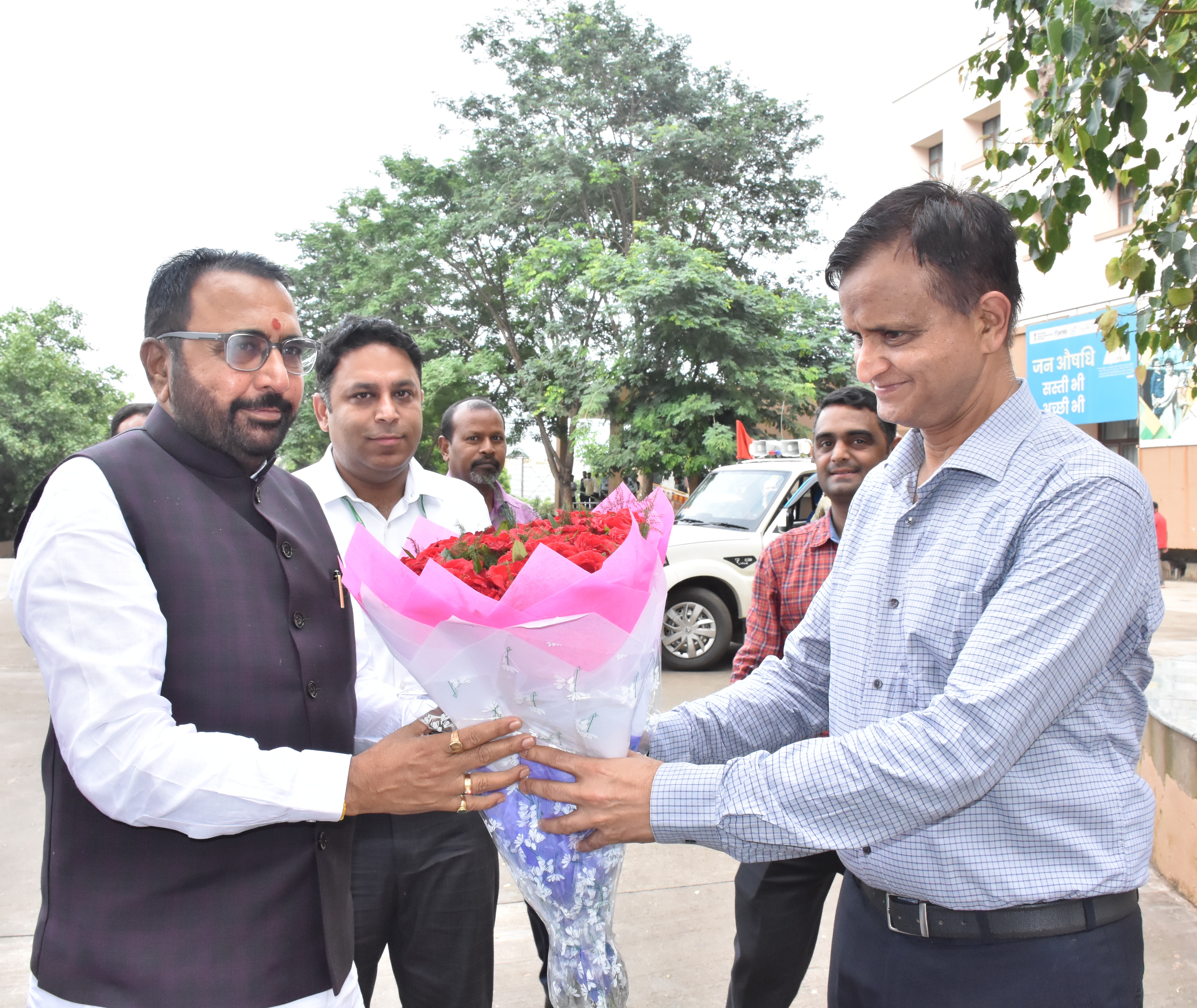INAUGURATION OF THE SECOND ADVANCED CARDIAC CATHETERIZATION LABORATORY AT AIIMS RAIPUR BY THE MINISTER OF AYUSH AND HEALTH & FAMILY WELFARE On August 4, 2024, the Hon’ble Minister of State for AYUSH and the Ministry of Health and Family Welfare, Government of India, Mr. Prataprao Jadhav, accompanied by the Hon’ble Health Minister of Chhattisgarh, Mr. Shyam Bihari Jaiswal, was received by Lt Gen Ashok Jindal (Retd), Executive Director and CEO of AIIMS Raipur. Mr. Prataprao Jadhav inaugurated the state-of-the-art second cardiac catheterization laboratory at AIIMS Raipur, which previously had only one cath lab performing approximately 150 plus cardiac catheterizations procedures in a month (including angioplasties, pacemakers, CRT-D, ICD, and device closures of ASD, VSD, and PDA), now boasts this advanced facility expected to significantly increase the number of angiographies and angioplasties performed. This will reduce patient waiting times and enhance the hospital's capacity to provide timely and efficient cardiac care. Moreover, the new lab will serve as a critical training ground for medical students in the DM Cardiology program, fostering a new generation of highly skilled cardiologists. During his visit, Mr. Jadhav toured several key departments, including the emergency pediatric department, the trauma and emergency department, and the AYUSH department, meticulously inspecting the patient care facilities. His tour underscored the institution's commitment to delivering comprehensive, integrated healthcare services. Following the tour, the Hon’ble Minister held a constructive meeting with the Executive Director, Deans, and Medical Superintendent of AIIMS Raipur. He lauded the institution for its exceptional healthcare facilities and services, recognizing AIIMS Raipur as a beacon of medical excellence in the region.