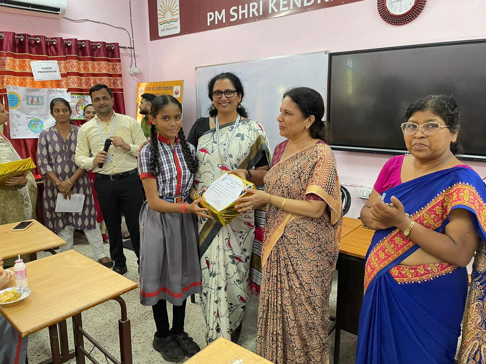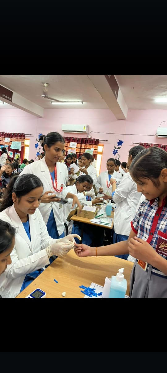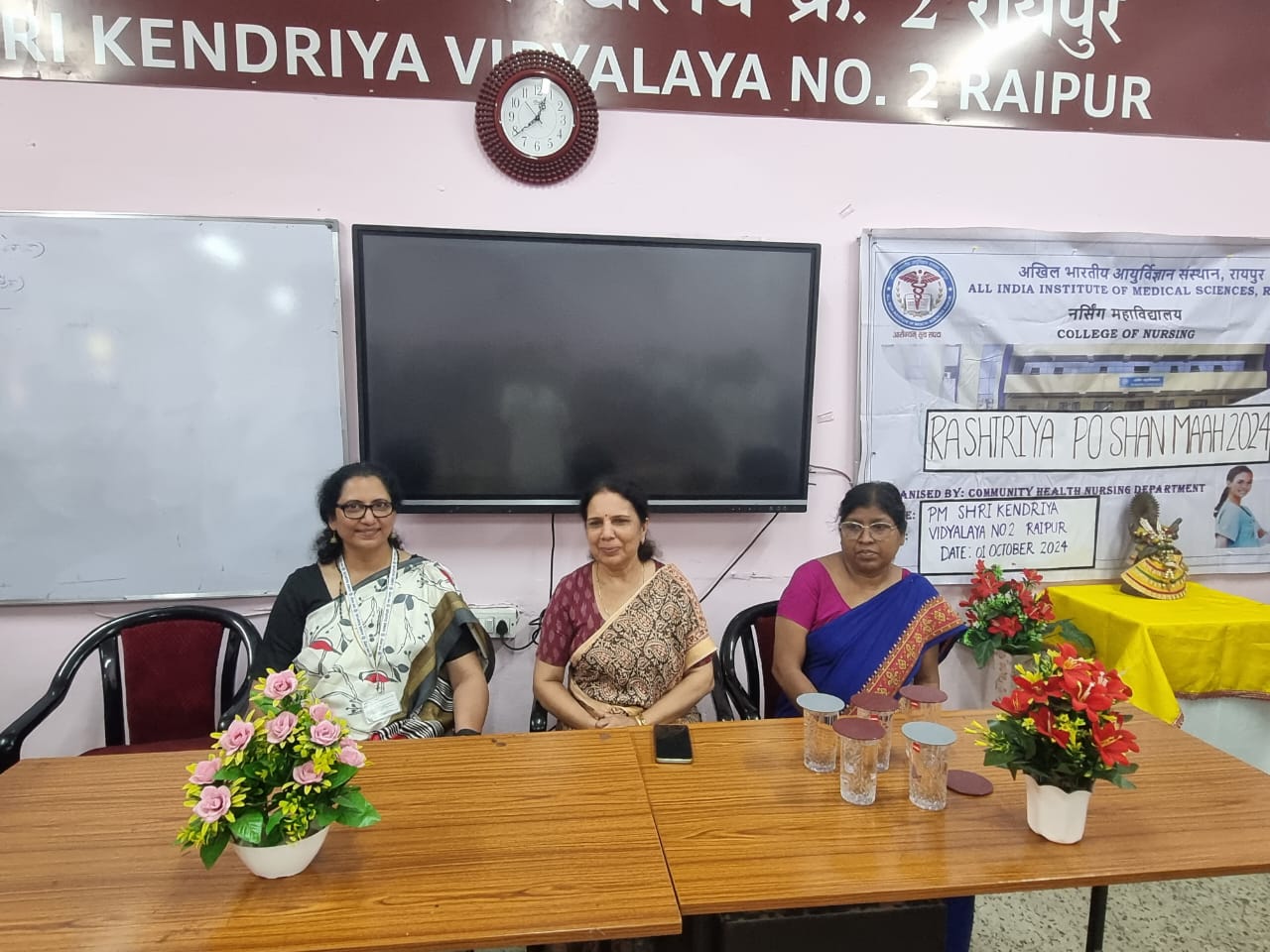 As part of PoshanMaah 2024, the College of Nursing, All India Institute of Medical Sciences, Raipur, organized various outreach activities on September 30th and October 1st 2024. An awareness program on the theme Importance of the first 1000 days for a mother and child" was conducted at theAnganwadi in the Khokhopara area of Raipur, benefiting 25 mothers and children. Additionally,screening for anemia and malnutrition was carried out for 120 students at PM Shri Kendriya VidyalayaNo 02, Raipur, along with an awareness session on the importance of PoshanMaah celebration and the prevention of anemia among adolescent girls. A poster competition on the topic on balanced diet was also held for school children, with the top 3 posters being awarded. The event was attended by Mr. Sujit Saxena, Principal, Mrs. Sunita Khribat, Vice Principal, Mrs. Elizabeth J Mathew, TGT Biology at PM Shri Kendriya Vidyalaya No 02, Raipur, and organized by Dr. Binu Mathew, Professor Cum Principal, Mrs Rohisha IK, Ms Ritika Rocque, Mr Harish Kumar, Mr Abdulmunaf Mujawar and Ms Ramya R, Nursing Faculty of the Community Health Nursing Department, College of Nursing AIIMS, Raipur. The program was supported by Lt. Gen Ashok Jindal (Retd), Executive Director and CEO of AIIMS, Raipur, and Prof. Alok C Agrawal, Dean (Academics) at AIIMS, Raipur. The event concluded with a vote of thanks and prize distribution.