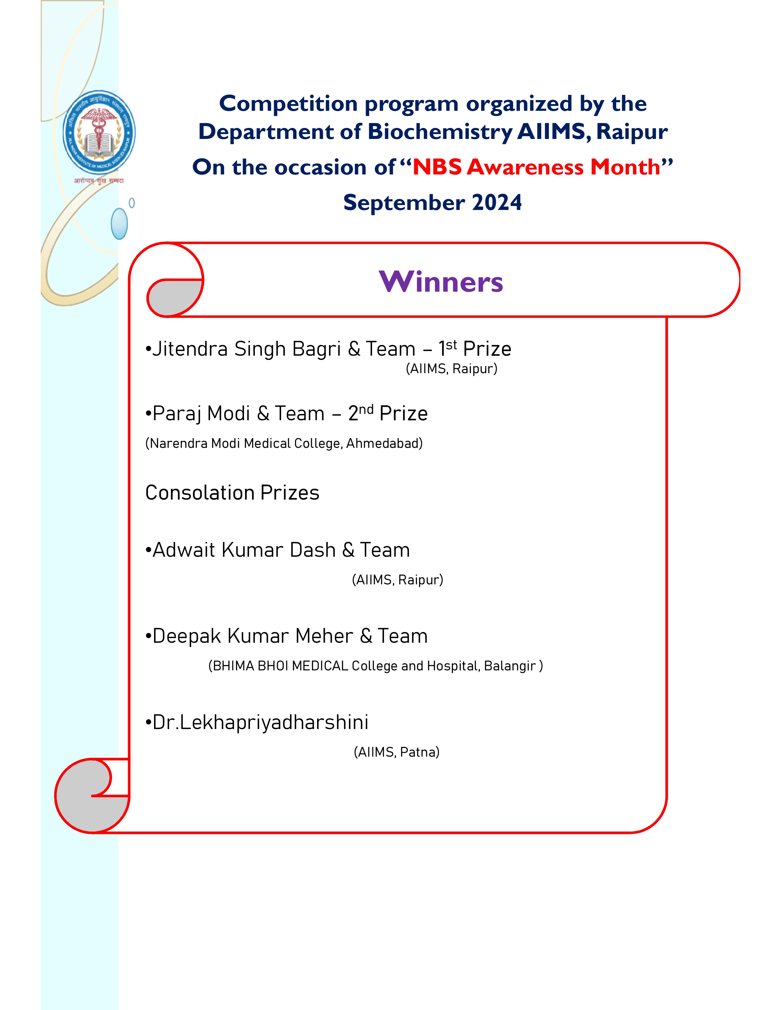 Competition program organized by the Department of Biochemistry AIIMS, Raipur On the occasion of NBS Awareness Month September 2024