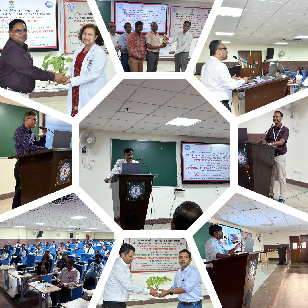 National Pharmacovigilance Week 2025 on the official AIIMS Raipur. The event was successfully conducted with the theme Your Safety, Just a Click Away, and the photographs will highlight the active participation and achievements of the institute.
