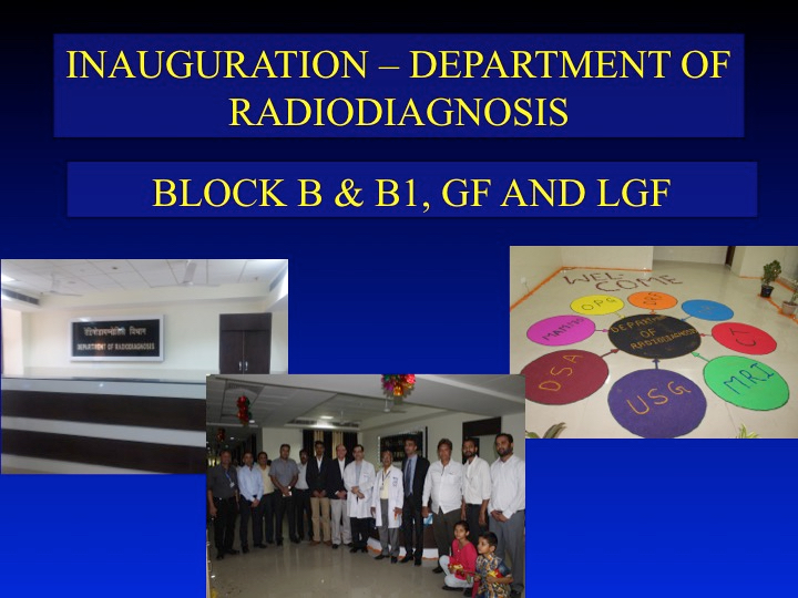 Department of Radiodiagnosis has been inaugurated in the new block of B and B1 at All India Institute of Medical Sciences Raipur on 20th of March 2017 at 5 pm. The inauguration was done by Prof Dr Nitin M Nagarkar, Director AIIMS Raipur in the presence of the Medical Superintendent Prof Praveen Neema, the Head of the department of Radiodiagnosis Prof Dr NarendraBodhey, the Dean of the institute Prof SP Dhaneria, the Deputy Director (Admin), MrNeeresh Sharma, MrPrajapati, Superintending engineer Project Cell, AIIMS Raipur. Dr R M Chandola, Medical Physicist of Mekhara and Director State Radiation Safety, was also present. Dr Eli Mohapatra, Dr SaritaAgrawal, Dr Dhanesh Sharma and other faculties from various departments and the staff of the institute were also present during the occasion. Interventional Radiology suite equipped with a state-of-the-art biplane Digital Substraction Angiography (DSA)unit Philips FD20 20, Dual Detector Digital Radiography unit (Philips Digital Diagnost), Digital OPG (Planmeca), Digital Mammography unit (Hologik) with stereotactic biopsy unit, 256 Slice Dual Energy Multidetector CT (Siemens Somatom Definition Flash) were all inaugurated. As per the information from Prof Dr NarendraBodhey, the biplane DSA unit is the first of its kind in the state of Chhattisgarh. All types of interventional radiology procedures can be done. Few examples are embolization for hemoptysis (bleeding during cough) for post tuberculosis cases; controlling of post delivery / ceasarean bleeding in females to save the uterus, aneurysm coiling for brain hemorrhage, angioplasty and stenting of neck and brain arteries in cases of stroke, and in blocks of limb arteries. Digital Radiography, mammography and OPG systems will provide high resolution Xray images of the whole body, breast and of the jaw also for defining various diseases, effects of trauma or screening of cancer , etc. State of the dual energy 256 slice MDCT has also been installed which can perform CT angiography of the coronary tree in a single heart beat time. This equipment can also differentiate the chemical composition of the kidney stones that can decide medical or surgical management. The department is already providing routine Xray and Doppler USG services. The above equipments shall start functioning immediately after the licence of operation is granted by the AERB. The departmental staff who contributed for the success of the inaugural function were Mr Rajesh Tiwari, MrPradeepBarve, MrsVijitaSinup, Mr Suresh, Miss Elima, MrShahid, Mr Manish, Miss Manjusha, Rubi, Dr Kamlesh, Dr Sanjana, Dr Ramakrishna,MissJyoti, MrVedprakash, Mr Dharma, Miss Vandana and others.