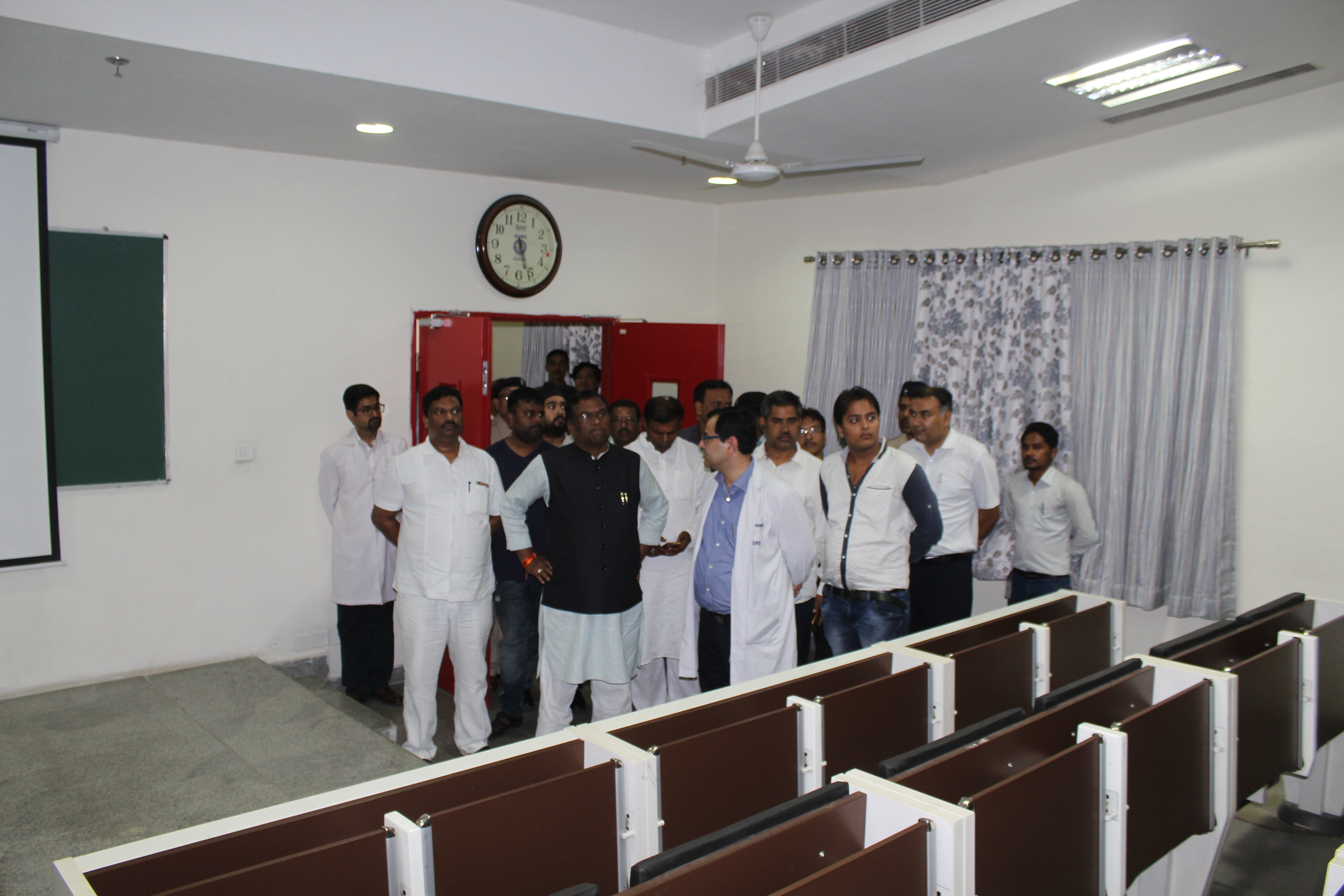 Honorable Minister of State for Health and Family Welfare Shree Faggan Singh Kulaste visited AIIMS Raipur on 3 June 2017. He visited various departments and new OPD facility of the Institute.
