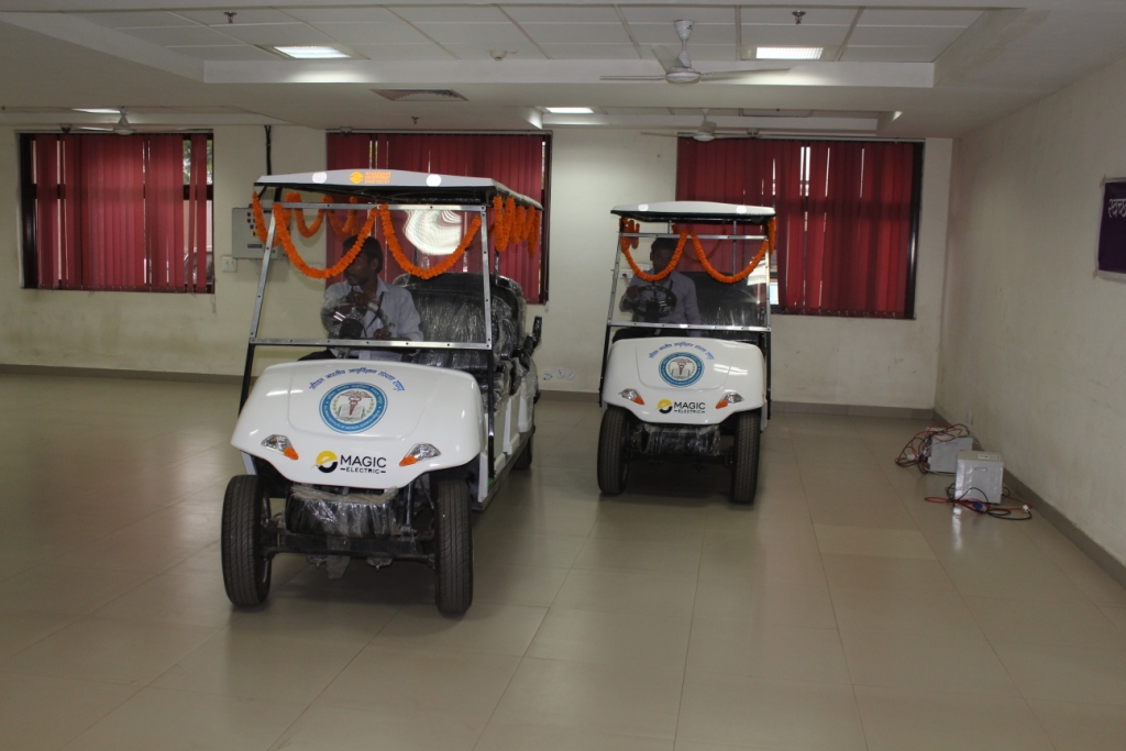Electric cars were added onto facilities of AIIMS Raipur, for old age and disabled people. This facility was inaugurated on 05-Jun-2017.