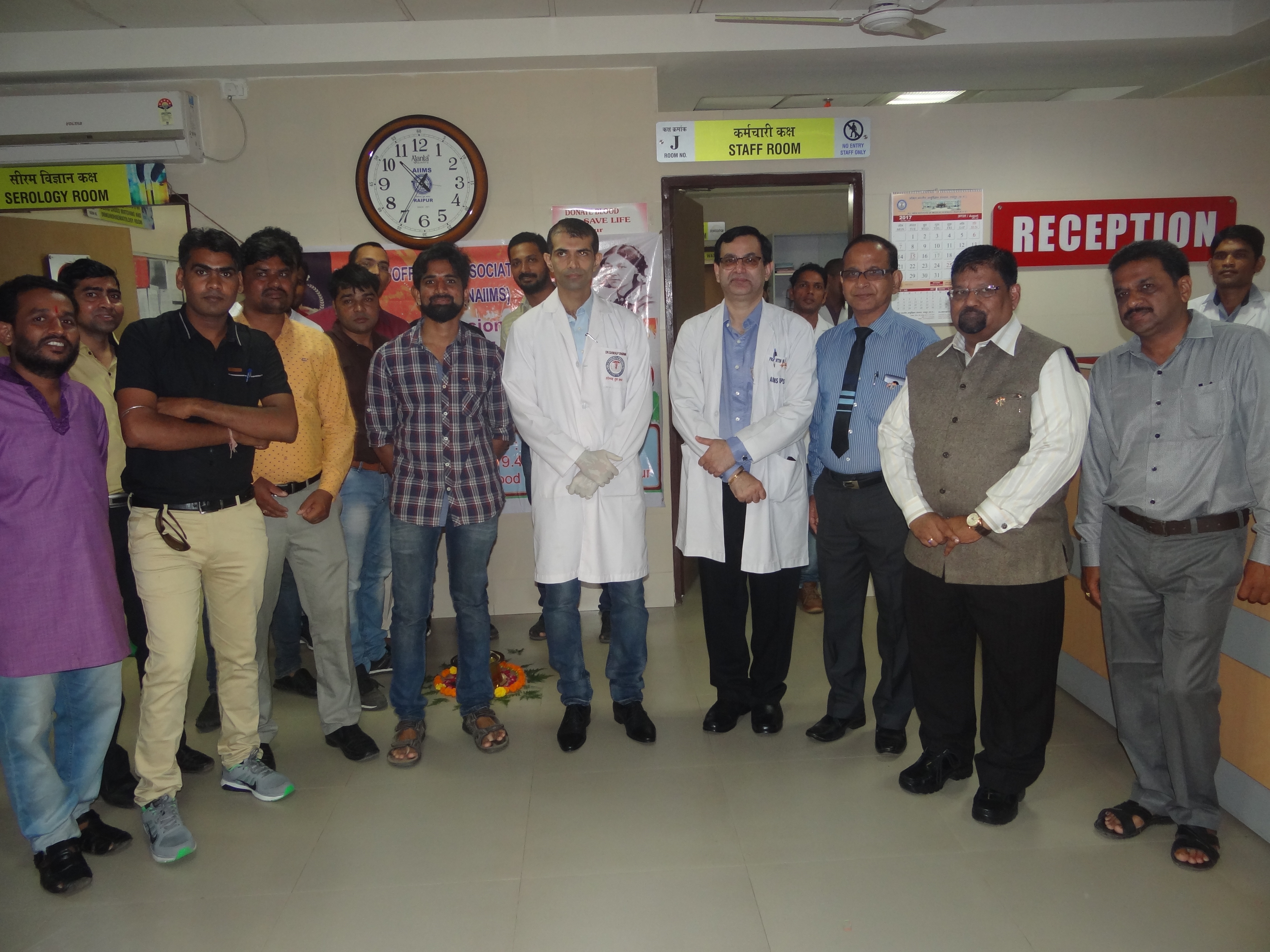 The Department of Transfusion Medicine AIIMS Raipur, under the guidance and directions from the honorable Director, AIIMS Raipur and Medical Superintendent, AIIMS Raipur organized a blood donation camp in the premises of Hospital Block A on 15th August 2017 on the occasion of 71st anniversary of the Independence Day. Honorable Dean, Prof S.P Dhaneria graced the occasion as well by his presence at the venue of Blood Donation.non-remunerated blood donation for the Blood Bank at AIIMS Raipur.