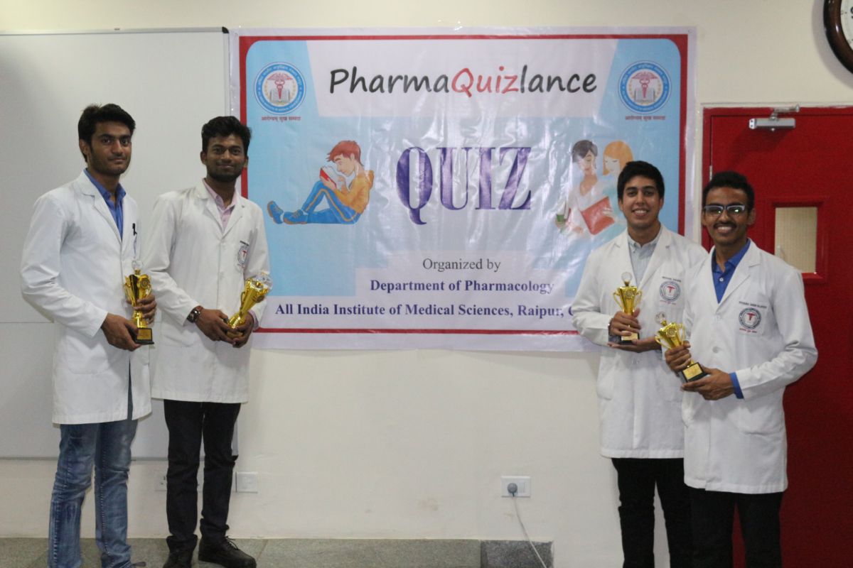 Department of Pharmacology, AIIMS Raipur organized, Pharmacology Quiz – PharmaQuizlance, for MBBS Students on 18th September 2018 under the guidance of Dr. S. P. Dhaneria, Dean (Academics) and Professor and Head, Department of Pharmacology, AIIMS Raipur. Four teams participated in this quiz. Krishna Chandra Jangid (5th Semester) and Devendra Jain (5th Semester), were adjudged as winner whereas Vipendra Rajpoot (7th Semester) and Avichal Rajpal (7th Semester) were runner-up. The winning teams were awarded with trophies, books and certificates.