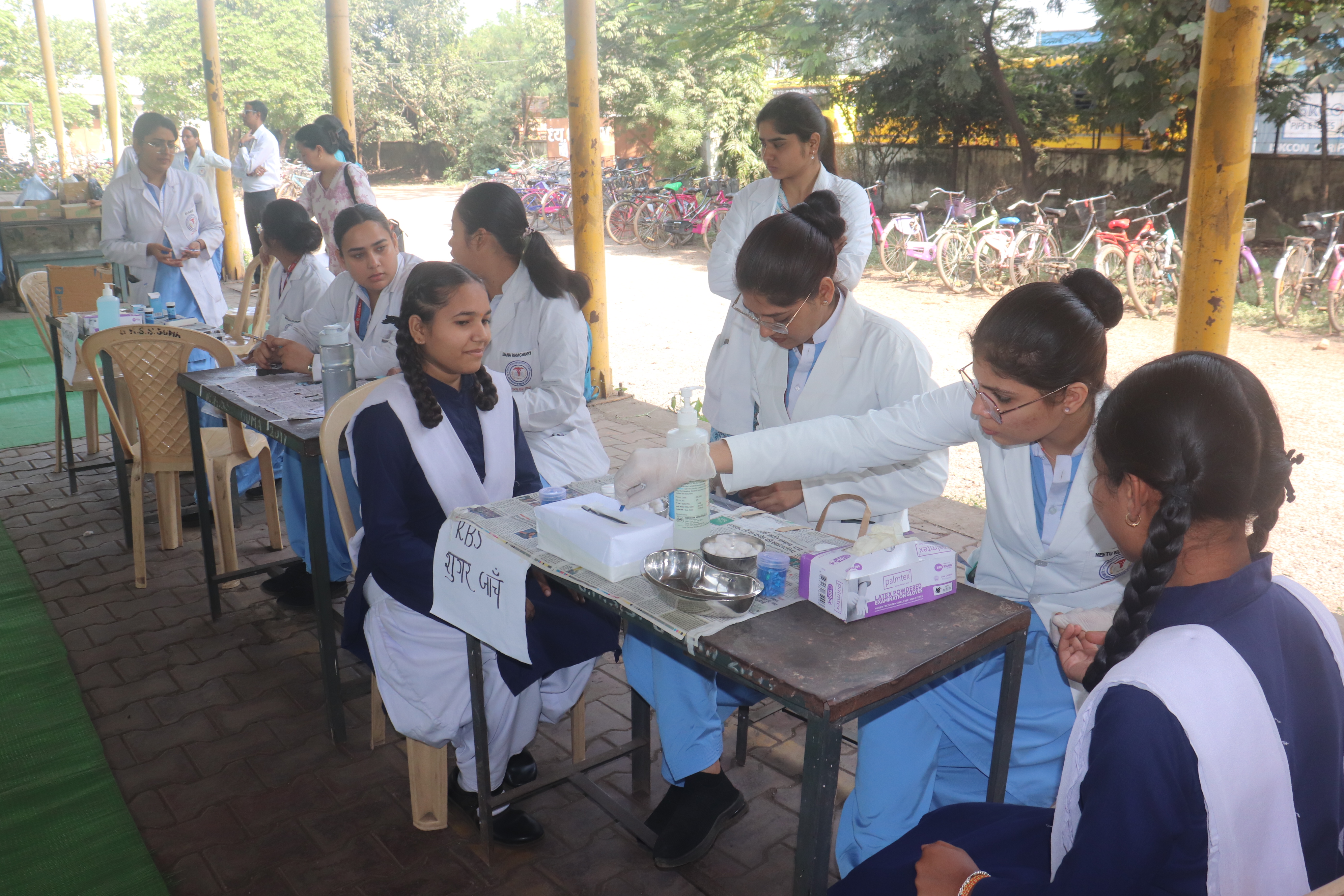 School Health Program was successfully organized and conducted by the 4th year B.Sc. Nursing students (Batch 2021) along with M.Sc. Nursing 1st and 2nd year students specializing in Obstetrics and Gynecological Nursing, Pediatric Health Nursing, and Mental Health Nursing of the College of Nursing, AIIMS Raipur, at Government Higher Secondary School, Guma on 7th November 2025. The program was sponsored by the Rotary Club of Raipur. The main objective of the program was to promote health awareness among school children, identify common health issues, and encourage healthy lifestyle practices. The activities for the day included a comprehensive health assessment of school students, covering general physical examination, nutritional status, oral hygiene, and vision screening. This was followed by health education sessions on important topics such as Climate Change and Its Effects on Human Health, Menstrual Hygiene Management, and Prevention of Substance Abuse. The sessions were made more engaging and student-friendly through interactive games, quizzes, and demonstrations, ensuring active participation and better understanding of the topics. A poster competition on the theme Climate Change Affecting Human Health was also organized to encourage creativity and environmental awareness among students. Participants presented innovative and informative posters, and winners were felicitated with prizes sponsored by the Rotary Club of Raipur. Additionally, distribution of snacks to all participating students was also kindly sponsored by the Rotary Club of Raipur, making the event enjoyable and memorable for everyone. The program concluded with a vote of thanks, expressing appreciation to the Rotary Club of Raipur for their generous support, the school authorities for their collaboration, and the faculty members of the College of Nursing, AIIMS Raipur, for their guidance and supervision.Overall, the School Health Program at Government Higher Secondary School, Guma proved to be a meaningful and interactive initiative that enhanced the students’ health awareness and provided valuable hands-on learning experience for the nursing students, fostering community engagement and health promotion.