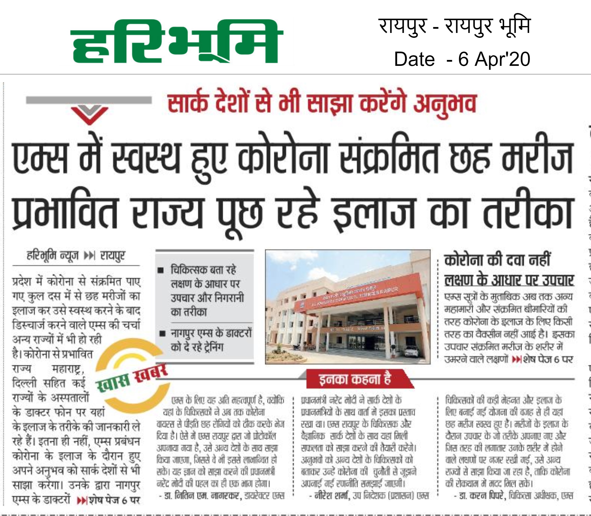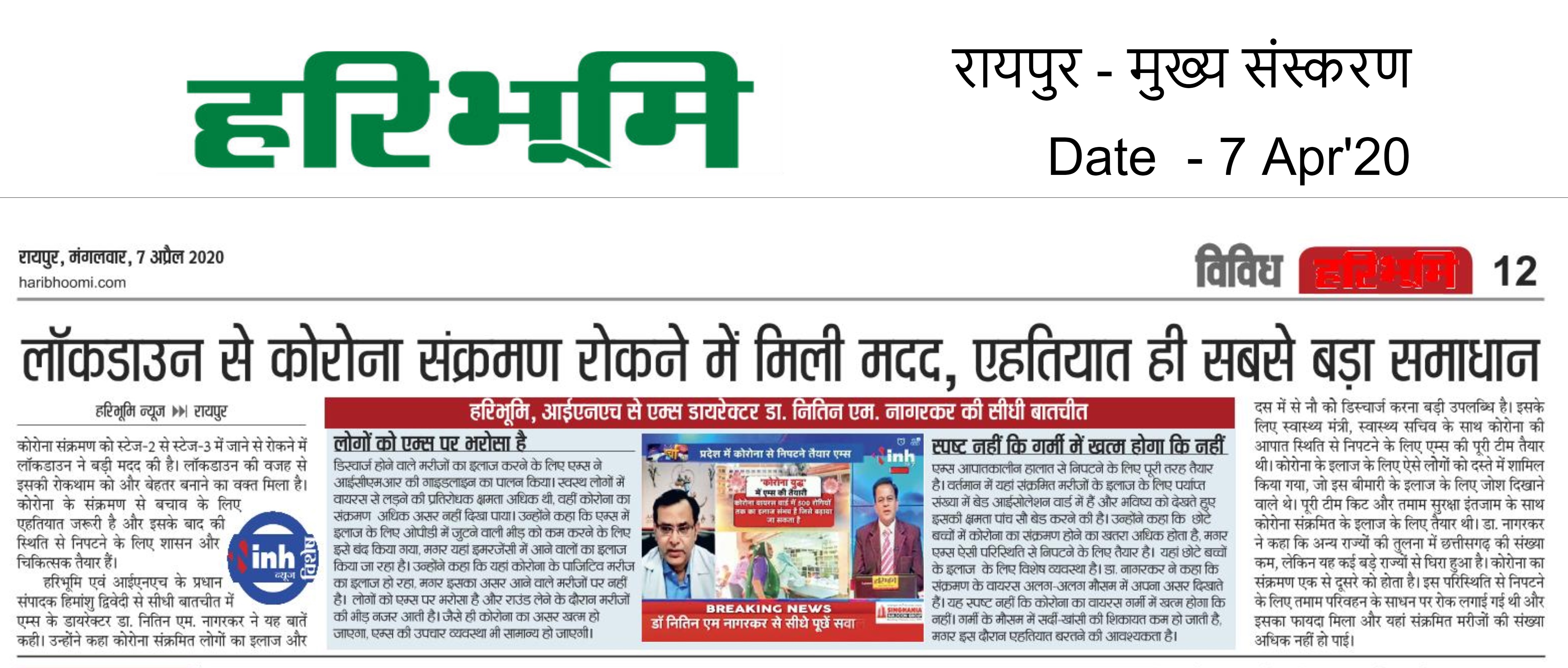 Haribhoomi raipur bhoomi front page 06-04-2020