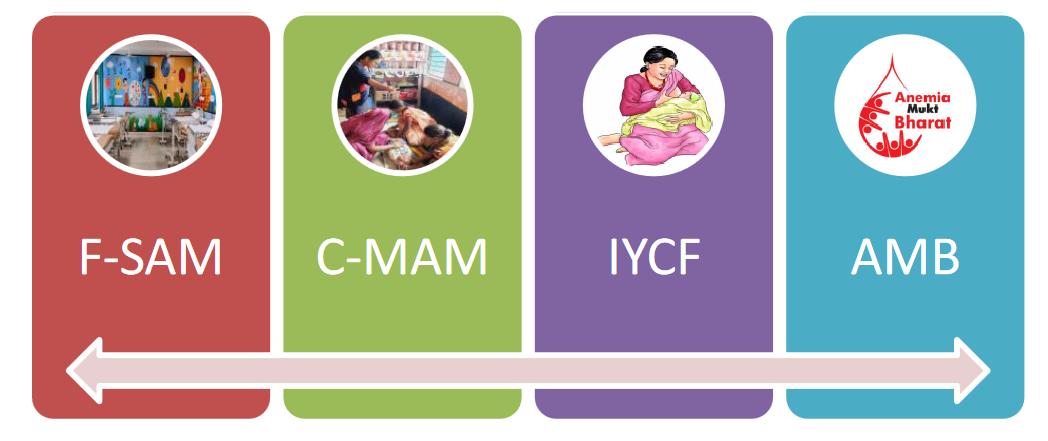 To assist the state government in its goal of malnutrition free and Anemia free Chhattisgarh by improving the Infant and Young Child Feeding (IYCF) Practices in the state, skilled management of children with Severe Acute Malnutrition (SAM) through facility and community care including growth faltering in under 6 months infants.