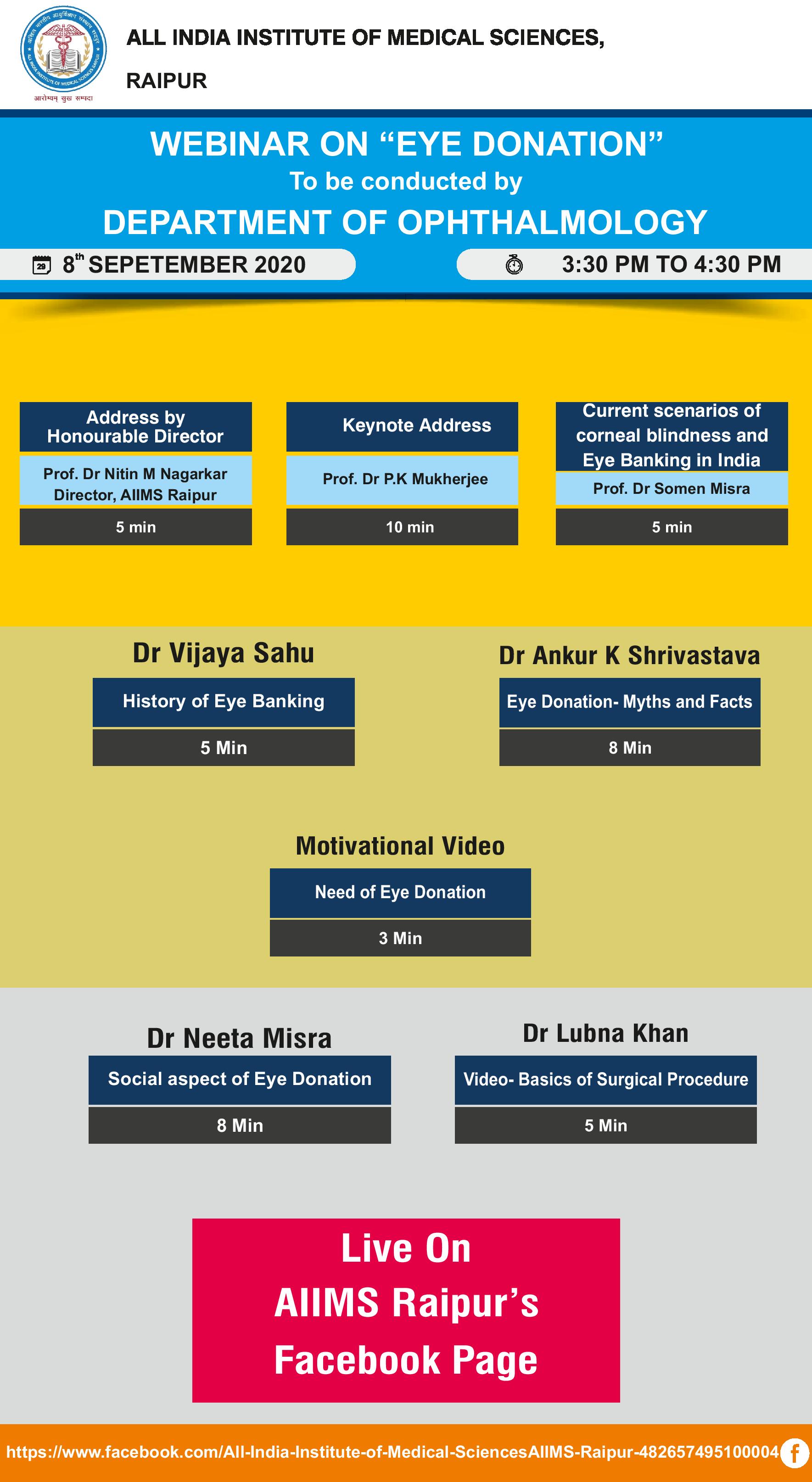 | 18 | WEBINAR ON EYE DONATION : 8th September 2020(Conducted by Opthalmology Department ,AIIMS,Raipur. | Download | 09/08/2020 |